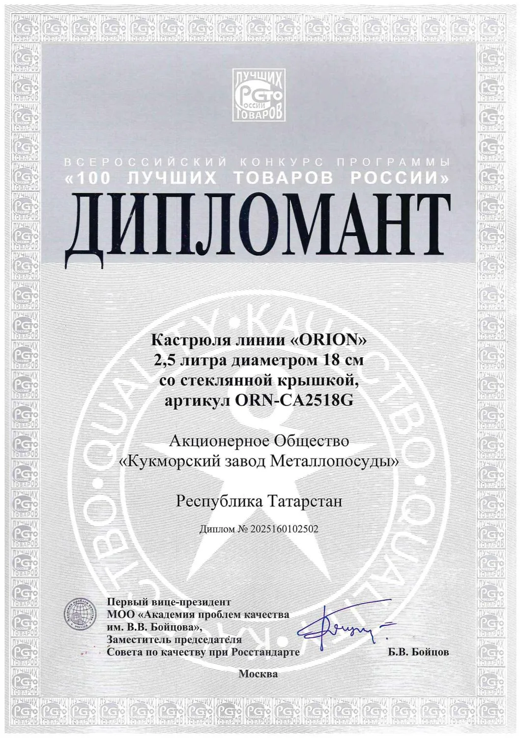 Кастрюля линии "ORION" 2,5 литра, диаметром 18 см, со стеклянной крышкой Федеральный 2025г